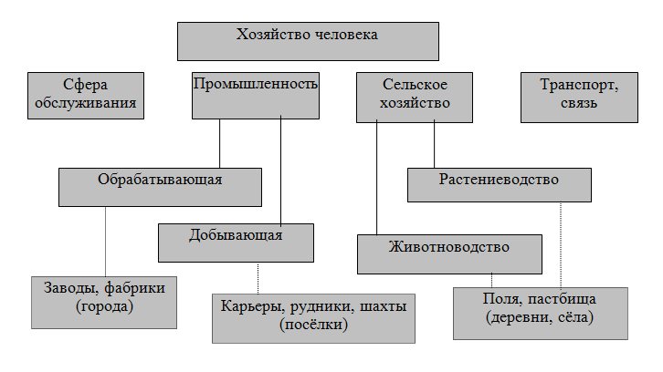 Первая схема, с которой в упрощённом виде знакомятся дети, – «Хозяйство человека»: